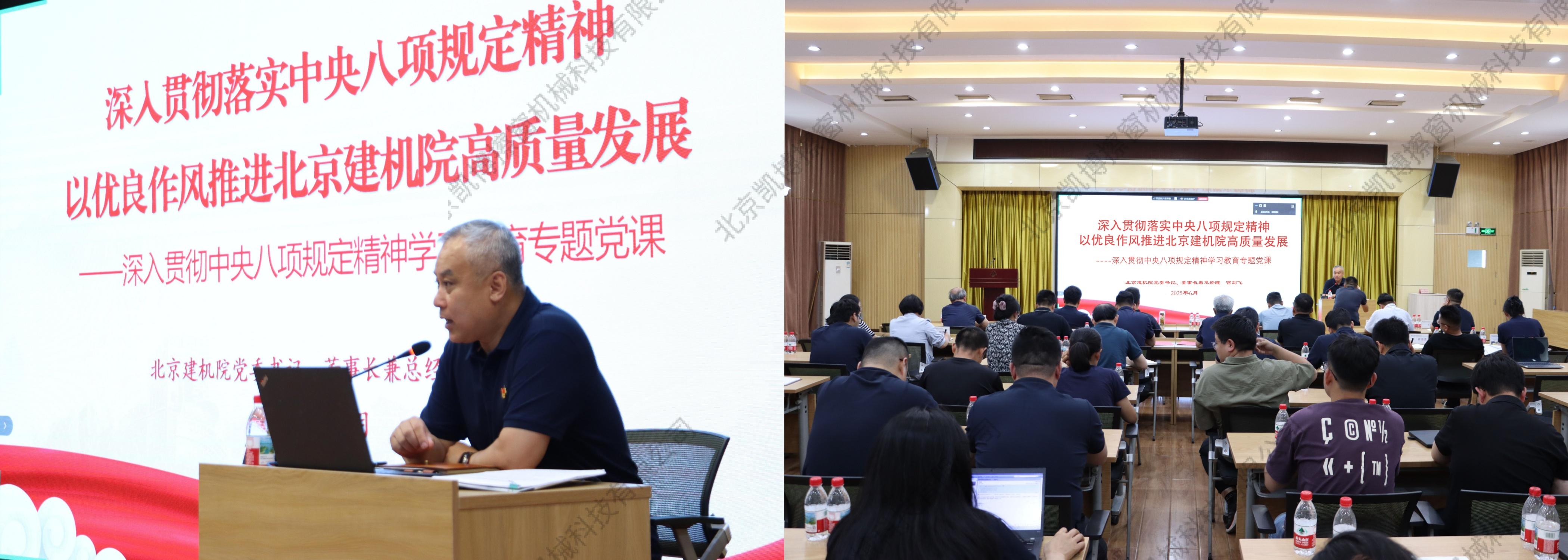 6月30日,北京建機(jī)院黨委書記、董事長兼總經(jīng)理宮劍飛以《深入貫徹落實中央八項規(guī)定精神,以優(yōu)良作風(fēng)推進(jìn)北京建機(jī)院高質(zhì)量發(fā)展》為主題講授專題黨課。黨課回顧黨的作風(fēng)建設(shè)的歷史脈絡(luò)與黨內(nèi)教育實踐寶貴經(jīng)驗,重點(diǎn)學(xué)習(xí)習(xí)近平總書記關(guān)于黨的作風(fēng)建設(shè)的重要論述,逐條解讀《中國建筑科學(xué)研究院有限公司關(guān)于嚴(yán)禁違規(guī)吃喝的十條規(guī)定》。宮劍飛指出,當(dāng)前北京建機(jī)院正處于創(chuàng)新突破關(guān)鍵時期,一要以上率下、示范帶動,領(lǐng)導(dǎo)干部要堅持帶頭做、帶頭抓,堅定不移地將作風(fēng)建設(shè)的各項要求落到實處;二要久久為功、建章立制,以梳理出的問題清單為靶向改進(jìn)工作,以制度建設(shè)固化作風(fēng)建設(shè)成果,推動作風(fēng)建設(shè)常態(tài)化長效化;三要涵育廉潔文化,將好作風(fēng)轉(zhuǎn)化為生產(chǎn)力,以嚴(yán)明的紀(jì)律、務(wù)實的作風(fēng)、昂揚(yáng)的斗志投身工作。